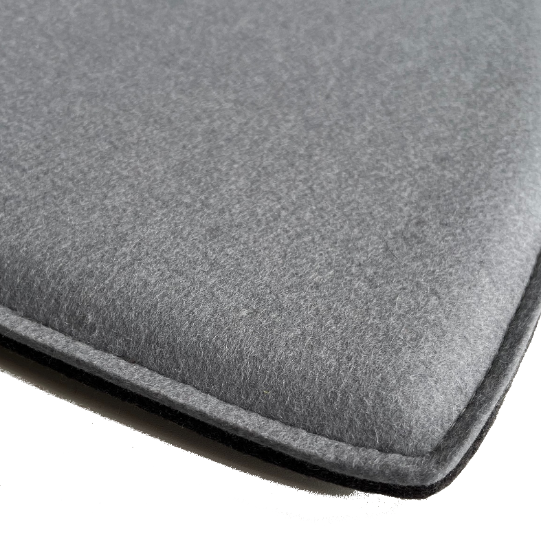 Maßgefertigtes Stuhlkissen für den Vico Magistretti Stuhlklassiker Maui von Kartell. Das Kissen besteht aus 2 Lagen Filz aus Schurwolle à jeweils 3 mm, gefüttert mit einem 10 mm dicken Inlay aus Schaumstoff. Dadurch ist es besonders weich und optimiert noch einmal den Sitzkomfort und die Optik ihres Stuhls. Die Unterseite des Stuhlkissens für den Maui Stuhl ist immer 012 Anthrazitgrau meliert und hat eine Antirutschbeschichtung.